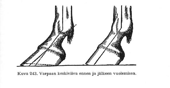 Käyden taluttaminen osoittaa, kuinka hevonen vie jalkansa ja kavionsa eteenpäin sekä astuuko se tasan kavioilleen. Hevosta talutettaessa käyden suoraan poispäin sekä takaisin tarkastajaa kohti tulevat nimenomaan askeleen epäsäännöllisyydet selvästi näkyviin ja ennen kaikkea voi tarkastaja todeta , missä määrin hevonen astuu epätasaisesti kavioilleen. Säännöllisen asennon hevoselle on ominaista, että sen astuessa kavion koko alapinta tasan koskettaa maata. Jos sitä vastoin hevosen astuessa joko ulko- tai sisäseinämä ensin koskettaa maata, osoittaa tämä, että ko. seinämä on vuoltaessa jätetty liian korkeaksi, josta seurauksena on ollut virheellinen jalan tai varpaan asento.