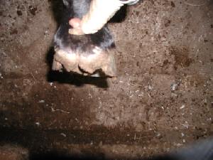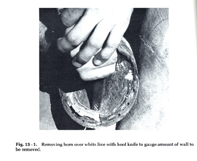 Seuraavaksi lyhennetään kavioseinämä. Tässä on tärkeää pitää leikkurit 90° kulmassa. Kannatinpinnan pitää olla suora leikkuun jälkeen.